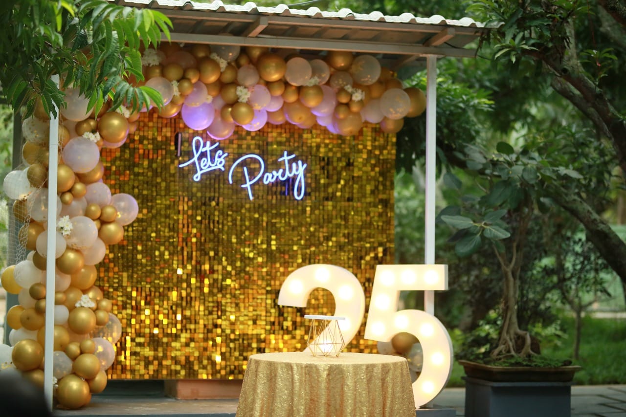 Celebrate your milestone anniversary in style with our elegant Golden Milestone Anniversary Decor. This stunning golden backdrop, adorned with balloons and big numbers, will add a touch of luxury and sophistication to your special occasion. Make a statement and create lasting memories with our exquisite decor.