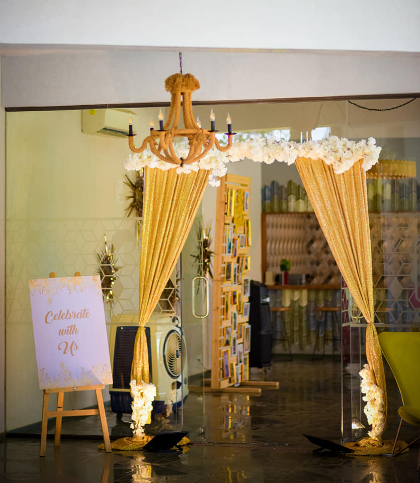 Elevate your anniversary celebration with the LuxeGlow Anniversary Decor. The golden shimmer and LED lights will add an elegant touch to any entrance, creating the perfect photo backdrop for your special day. Let the celebrations begin in style with this stunning decor.